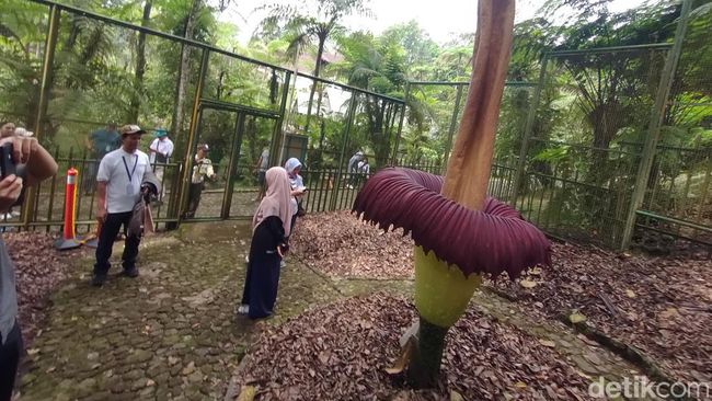 "Bunga bangkai indukan ini kembali mekar tadi malam. Ini yang ketujuh kalinya mekar dan untuk yang saat ini tinggi spadik 3,4 meter dan lebar spatanya 1,5 meter," ujar Peneliti Ahli Muda Pusat Riset Biosistematika dan Evolusi BRIN Destri, saat ditemui di Kebun Raya Cibodas, Minggu (26/5/2024).