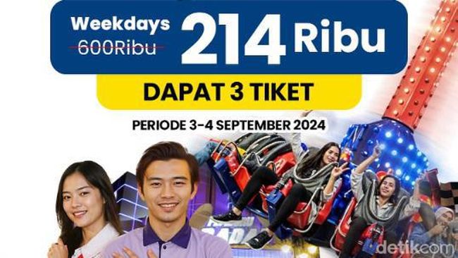 Khusus tanggal 3 dan 4 September 2024, tiket Trans Studio Bandung bisa didapatkan hanya dengan Rp214.000 saja! Ini sebagai bentuk penghargaan terhadap para pelanggan dan rasa terima kasih dan apresiasi mereka kepada konsumen yang setia.
