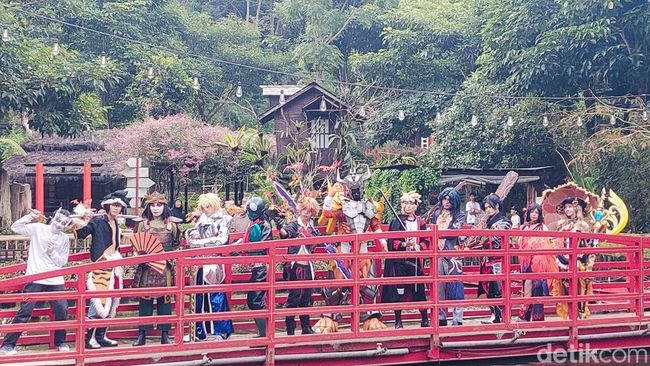 Tak cuma wisatawan saja, namun ada puluhan orang lalu lalang dalam balutan kostum yang unik. Penampilannya menyerupai karakter dalam anime dan game yang sedang digandrungi.