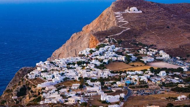 Dengan desa-desa yang dihiasi bangunan putih, bunga bugenvil yang berwarna-warni, dan jalanan berbatu, Pulau Folegandros memancarkan pesona Yunani tradisional yang tak lekang oleh waktu.
