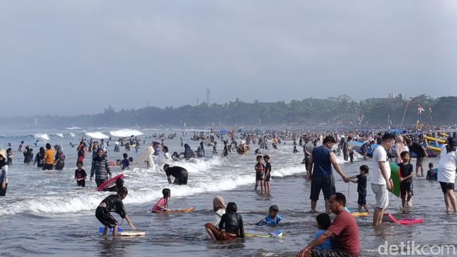 Pantauan detikJabar pada Minggu (26/1/2026) siang, pengunjung yang masuk Pantai Pangandaran terus bertambah. Hal tersebut dilihat dari jumlah volume kendaraan yang masuk.