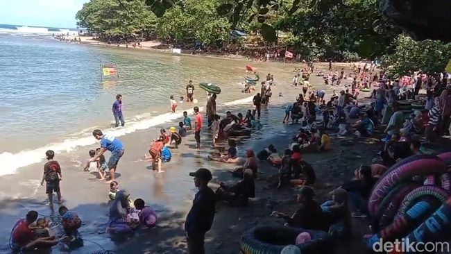 "Ini ada sekitar 700 orang di pantai saja yang kami pantau, di atas belum semuanya bisa ribuan," kata Ketua Balawista Pantai Sindangkerta Rahmat Saputra.