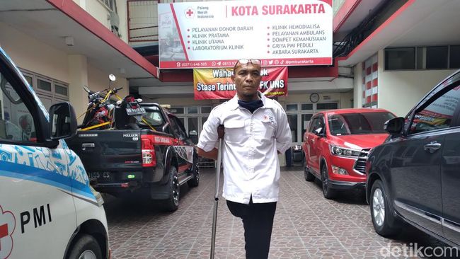 "Saat itu pukul dua siang, saya turun dari kereta untuk beli air minum. Saat naik, kereta jalan, saya terpeleset sampai kaki saya masuk ke kolong kereta," kata Sabar saat dijumpai di tempat kerjanya, kantor PMI Solo, Senin (6/12/2021).
