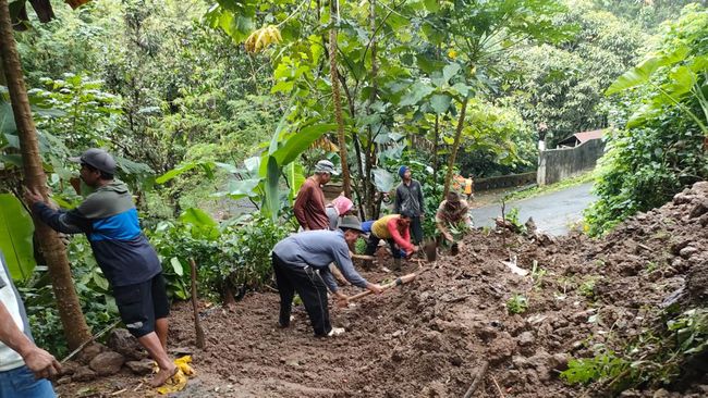 Dia mengatakan relawan BPBD bersama masyarakat bergotong-royong untuk membersihkan sisa-sisa longsoran. Disebutkan bekas longsoran pun ditutup dengan terpal.