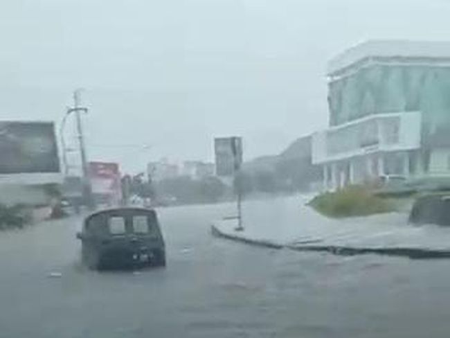 Video banjir di Simpang Siaga atau Simpang Lima Patung Arjuna Wijaya Boyolali ramai di mesia sosial hari ini. Tampak satu unit mobil berhenti atau macet di genangan itu.