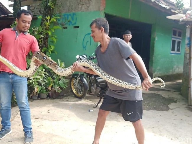 Salah satu warga kampung Siton, Beni Suseno,mengatakan ular itu sempat menggigit tetangganya ketika mengevakuasi ular tersebut dari halaman rumah.