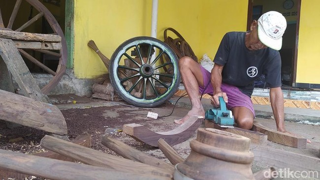 Ditemui detikJateng di rumahnya, Manto tengah mengerjakan pembuatan roda. Roda yang dibuat dengan bahan dari kayu Sonokeling. Pesanan tersebut datang dari orang Jogja.