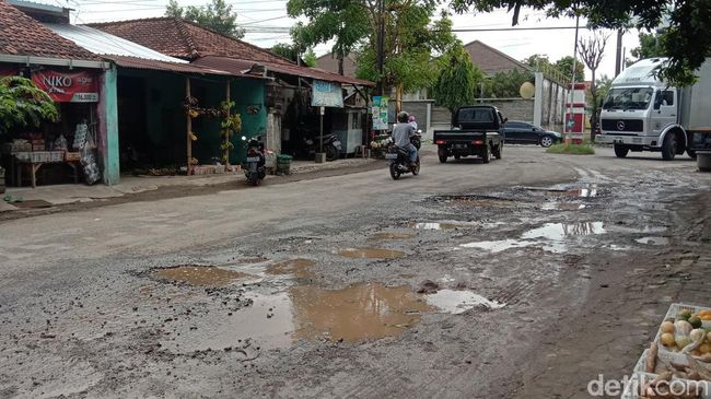 "Ini sudah lama, jalannya rusak genangan air kena barang dagangan saya, sering terjadi kecelakaan juga di sini," terang Purwito kepada wartawan ditemui di lokasi, Kamis (10/2/2022).