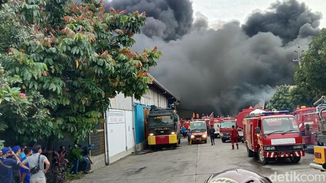 Dari pantauan detikJateng di lokasi, Sabtu (12/2) pukul 15.08 WIB, kobaran api belum juga padam. Asap hitam pekat masih terus mengepul dari dalam pabrik.