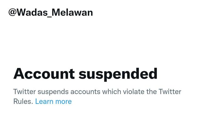 Untuk diketahui, akun Twitter @Wadas_Melawan tidak bisa diakses sore ini. Keterangan dalam laman tersebut yaitu "Twitter menangguhkan akun yang melanggar Peraturan Twitter. Pelajari lebih lanjut".