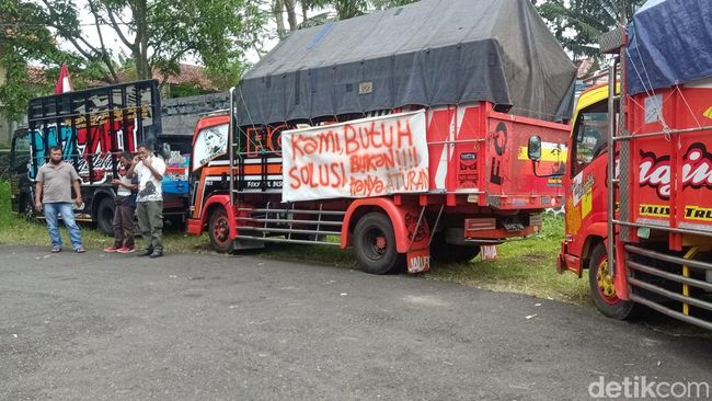 Sopir truk di Banjarnegara memprotes kebijakan pemerintah terkait over dimension over loading (ODOL). Para sopir truk meminta toleransi perihal aturan tersebut.