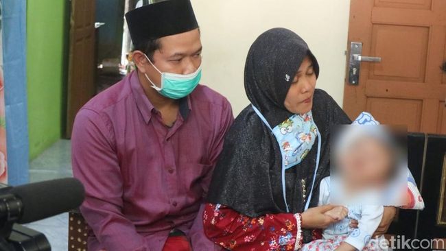 Saat ditemui detikJateng, Alwi berada di gendongan ibunya beralaskan sebuah bantal. Sesekali Alwi terlihat merengek dan seketika diayun-ayun ibunya agar tidak menangis.