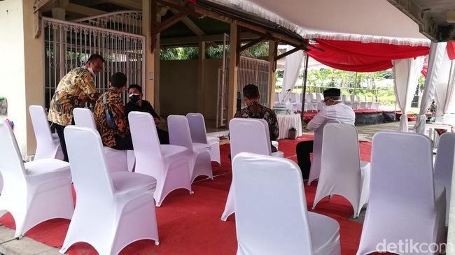 Puluhan kursi juga sudah tertata di bawah tenda. Sejumlah petugas berjaga di beberapa titik jalan menuju tempat pemakaman.