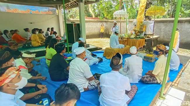Pantauan di lokasi, puluhan umat Hindu menggelar Mecaru di , Desa Plajan, Kecamatan Pakis Aji. Pelaksanaan dilakukan secara khidmat dan secara sederhana di tengah pandemi virus Corona atau COVID-19.