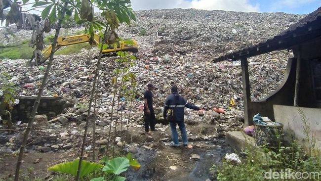 Longsoran bahkan menjebol tanggul pembatas setinggi satu meter, hingga material sampah masuk ke lahan pertanian milik warga. Terlihat alat berat mengeruk sampah di lokasi.