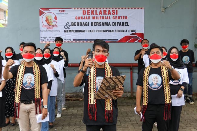 Ratusan mahasiswa dan para milenial di Bandar Lampung mendeklarasikan dukungannya untuk Ganjar Pranowo maju sebagai calon Presiden RI tahun 2024. Deklarasi digelar di Jl. Diponegoro No. 14 Gotong Royong, Tanjung Karang Pusat, Kota Bandar Lampung.