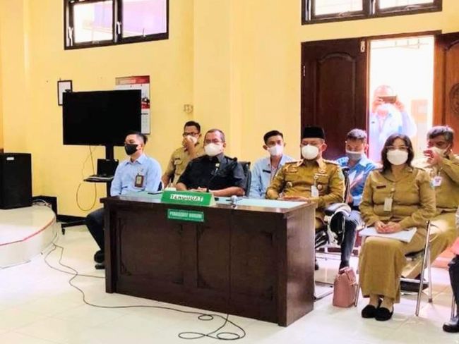 "Seperti hari ini bupati hadir pada persidangan, menunjukkan bupati patuh terhadap hukum," jelasnya.