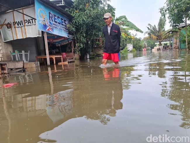 Dia menjelaskan genangan banjir juga berdampak di ruas jalan Pantura Pati-Rembang Desa Ketitang Wetan. Akibatnya arus lalu lintas sempat macet.