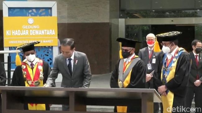 Presiden kemudian menandatangani dua prasasti, yakni prasasti untuk Gedung Ki Hadjar Dewantara dan sebuah gedung lagi milik UNS yang berada di Madiun, Jatim.
