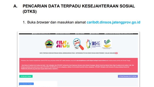 Dikutip dari website jatengprov.go.id, Senin (14/3/2022), terdapat file terkait panduan pencarian data DTKS Jateng yang bisa diunduh.
