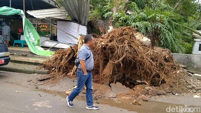 Untuk melihat penampakan pohon yang tumbang itu lebih dekat, simak foto-fotonya di atas.