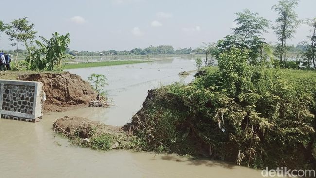 Tanggul Sungai Gamping di perbatasan Klaten-Gunungkidul, Desa Karangasem, Kecamatan Cawas, Klaten, Jawa Tengah, jebol dan merendam puluhan hektare sawah hingga hari ini. Tanggul itu disebut langganan jebol karena banyaknya tikus di kawasan tersebut.