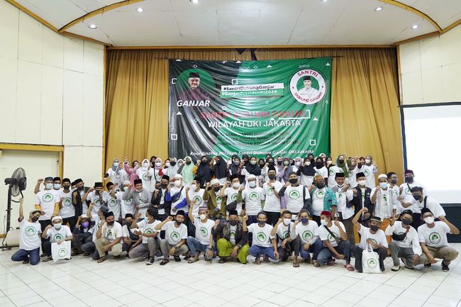 Ratusan santri dan mahasiswa yang tergabung dalam Santri Dukung Ganjar wilayah Jabodetabek menggaungkan deklarasi terhadap Gubernur Jawa Tengah, Ganjar Pranowo. Koordinator Santri Dukung Ganjar wilayah Jabodetabek, Farhan Ikhsan menyebut dukungan itu ditujukkan agar Ganjar maju dalam ajang pemilihan presiden (pilpres) 2024.