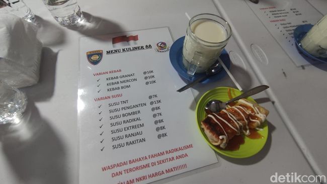 Hal itulah yang mendasari penamaan menu yang unik dan berhubungan dengan aksi terorisme. Yusuf berharap masyarakat bertanya sehingga dirinya bisa memberikan edukasi soal bahaya paham radikal. Dalam kertas menu pun diberi peringatan agar waspada paham radikalisme di sekitar kita.