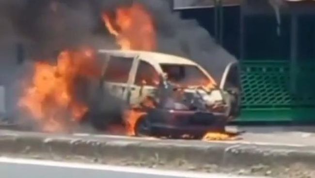 "Jadi, awal-mula keluar asap terlihat oleh salah satu penumpang yang ada di dalam mobil. Kendaraan terhenti dan penumpang keluar. Api kemudian membesar dan membakar mobil," kata Sodikin.