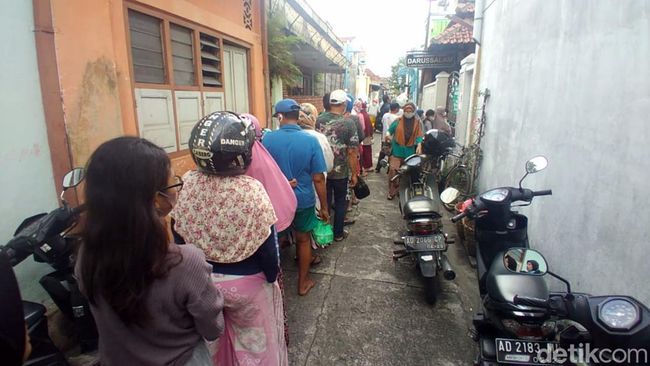 Bubur pun mulai dibagikan pukul 15.30 WIB tadi. Antrean takjil bubur Samin ini terpantau sampai area menuju masjid.