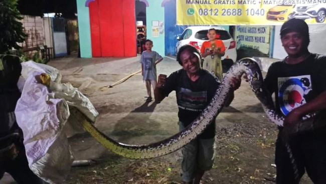 "Sontak mengetahui kalau ada ular besar, Heri berteriak memanggil warga yang berada di seberang jalan. Warga saat itu sedang pada minum jajan di angkringan setelah salat magrib sambil menunggu salat tarawih," sambung Parwito.