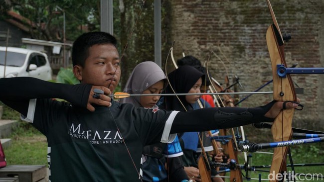 Mereka memanfaatkan lahan kosong berukuran 20x100 meter di sekitar permukiman mereka. Pekarangan itu pun mereka sulap menjadi area panahan lengkap dengan sasaran tembaknya.