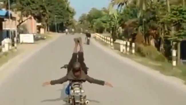 Sebelumnya diberitakan sebuah video viral beredar di media sosial memperlihatkan seorang pria mengendarai motor dengan gaya 'terbang'. Pria dalam video itu mengendarai motor dengan posisi telentang di atas jok motor.