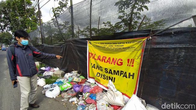 Berdasarkan pantauan detikJateng, Kamis (7/4/2022), tumpukan sampah ini persis di bekas tempat penampungan sampah (TPS) Setro Tempuran. Padahal, di tempat itu sudah dipasang pengumuman larangan membuang sampah. Bahkan, sekitar 50 meter juga dipasang jaring.