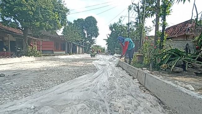 Pantauan detikJateng, ada sekitar 25 orang yang mengerjakan proyek betonisasi jalan tersebut. Ke-25 orang itu tampak menutup lubang-lubang di jalan dengan cor-coran semen dan meratakannya.