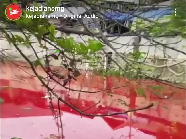 Kali Semarang di dekat Kota Lama Semarang berubah warna menjadi merah dan mengejutkan warga. Media sosial pun heboh karena hal itu tidak pernah terjadi.