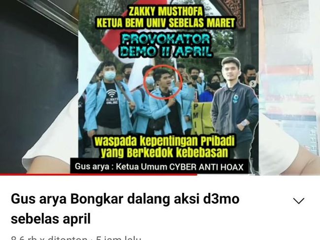 Sebelumnya diberitakan, jelang aksi mahasiswa dari BEM Seluruh Indonesia (BEM SI) 11 April, mantan Presiden BEM UNS Zakky Musthofa mendapatkan 'serangan' di media sosial. Presiden BEM UNS yang sudah purna tugas sejak sebulan yang lalu itu dituduh sebagai provokator aksi 11 April.