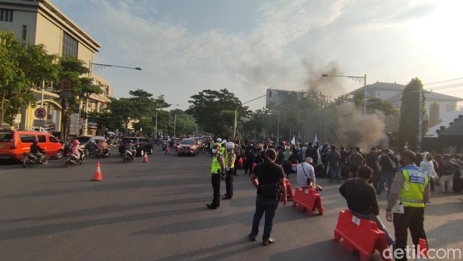 Dari pantauan detikjateng pukul 16.13 WIB, massa dari HMI melakukan unjuk rasa dengan membakar ban dan membentuk barisan mengelilingi api di jalan depan Kantor Gubernur Jawa Tengah. Lajur sebelah barat itu ditutup sedangkan sisi timur atau dari Mapolda Jateng menuju Simpang Lima diberlakukan dua arah.