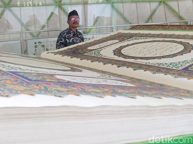 Ditemui detikJateng, Jumat (15/4/2022), Hayatuddin tampak terampil menggoreskan pena di atas kertas putih berukuran besar. Kertas itu membentang di atas meja di salah satu ruangan lantai empat di Masjid Baitul Qur'an KH Muntaha Alhafidz, Wonosobo.