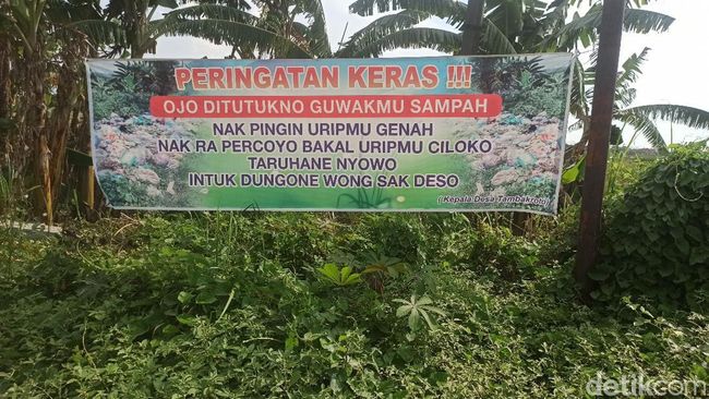 "Iya itu dari pihak desa (dua spanduk), karena kami itu sangat geram sekali. Ternyata selama kami di situ yang buang itu bukan warga kami, ternyata itu dari luar desa," ujar Ary melalui telepon, Senin (18/4/2022).