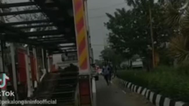 Perekam video merupakan pengendara yang berada di antrean belakang truk tersebut.
