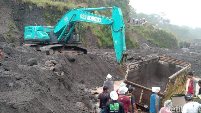 Bambang menyebut truk yang terjebak banjir lahar itu tengah proses muat pasir secara manual. Mulanya pengemudi truk sudah diperingatkan untuk putar balik tapi aliran banjir lahar hujan keburu datang, dan akhirnya dia terjebak.