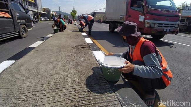 Pantauan detikJateng, salah satunya pengecatan marka dan pembersihan rumput di median maupun trotoar dilakukan di wilayah Magelang. Adapun pengecatan dan pembersihan rumput ini dilakukan sepanjang 8 km mulai depan Artos Mal Magelang sampai Keprekan, Mungkid, Kabupaten Magelang.
