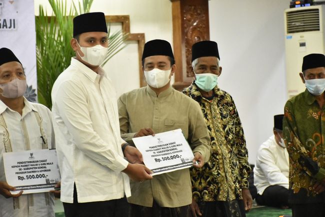 Pemerintah Kabupaten (Pemkab) Kendal kembali menyerahkan bantuan insentif untuk marbot masjid dan guru ngaji se-Kabupaten Kendal di Pendopo Tumenggung Bahurekso Kendal, Minggu (24/04). Bantuan insentif diserahkan kepada 964 marbot masjid dan 286 guru ngaji atau total 1.250 orang penerima bantuan di Kabupaten Kendal dengan bantuan masing-masing sebesar Rp 500.000.