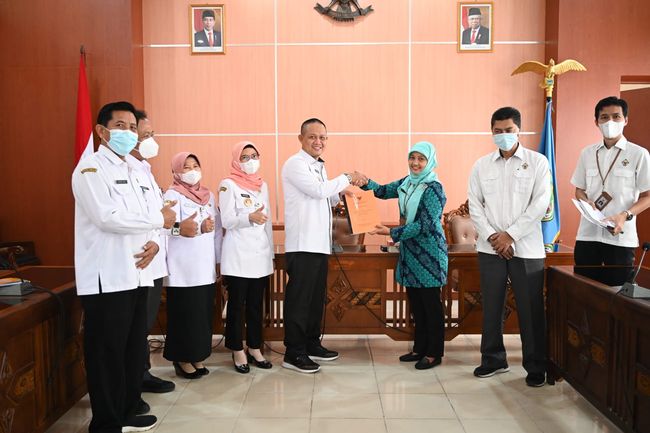 Bupati Kebumen Arif Sugiyanto bersama Wakil Bupati Ristawati Purwaningsih dan sejumlah pimpinan OPD menggelar rapat koordinasi dengan BPK Perwakilan Jawa Tengah terkait. Rapat digelar guna membahas pembenahan sistem pemerintahan agar bisa semakin akuntabel dan transparan.
