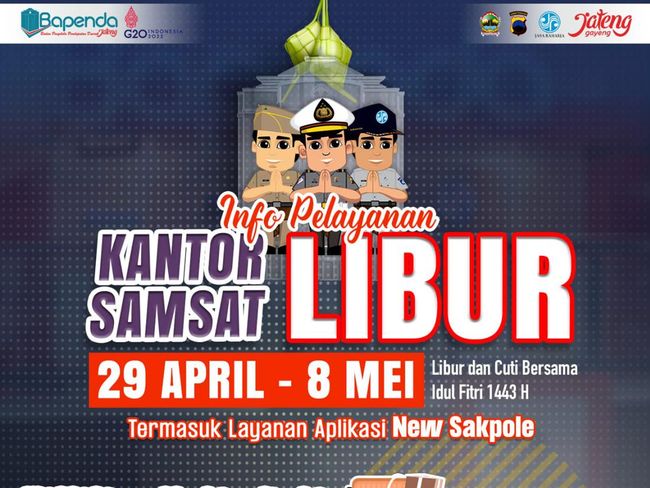 "Kantor Samsat libur 29 April-8 Mei, libur dan cuti bersama Idul Fitri. Termasuk layanan aplikasi Sakpole," jelas Hanindya.