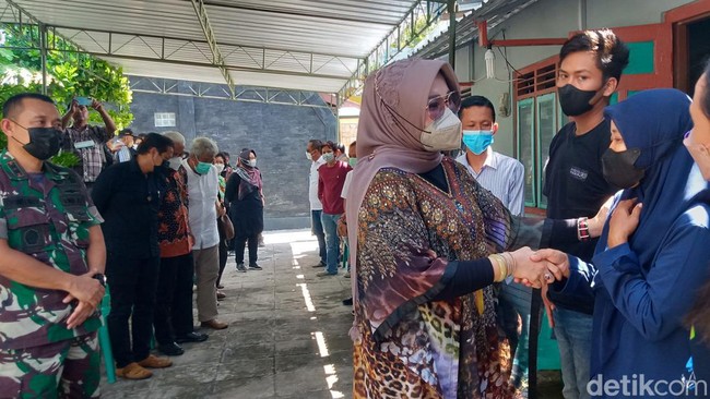 Bupati Klaten Sri Mulyani berkunjung ke rumah keluarga Danang Eko Sudigdo di Desa Jabung, Kecamatan Gantiwarno, warga yang meninggal karena sakit dan tak mendapat pinjaman ambulans dari puskesmas setempat.