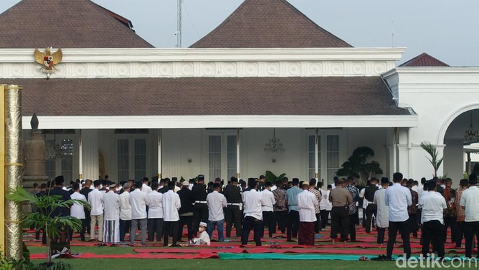 Presiden Joko Widodo (Jokowi) hari ini salat Id di Istana Yogyakarta. Ada beberapa warga yang bisa salat Id bersama Jokowi di Gedung Agung.
