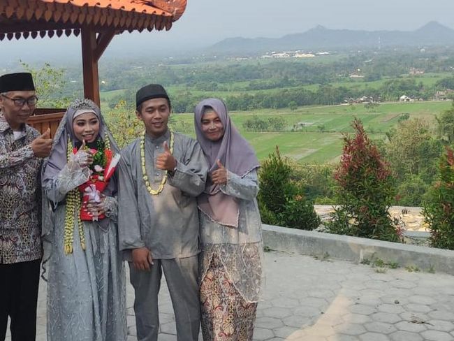 Pasangan Rivan Budianto dan Atikah Nurul Azizah menikah secara sederhana di kawasan objek wisata Gunung Pegat, yang ada di Dukuh Klile, Bulu, Karangasem, Sukoharjo, pada Jumat (7/5).