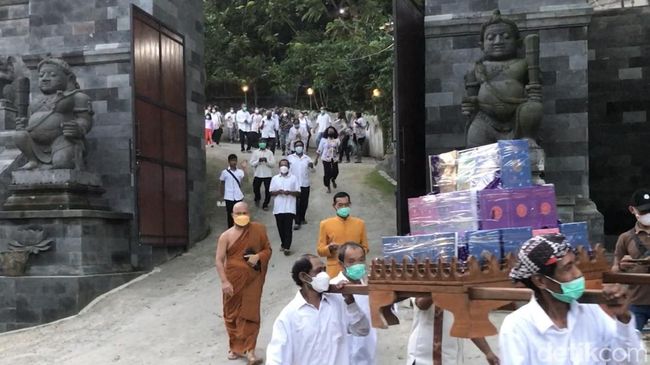 "Ini nanti ada namanya prosesi. Prosesi itu perjalanan dari satu tempat ke tempat yang dituju, membawa puja atau barang persembahan. Persembahan itu di sini, umat-umat membawa gunungan buah-buahan, hasil bumi, makanan," tutur Piyadhiro hari ini.